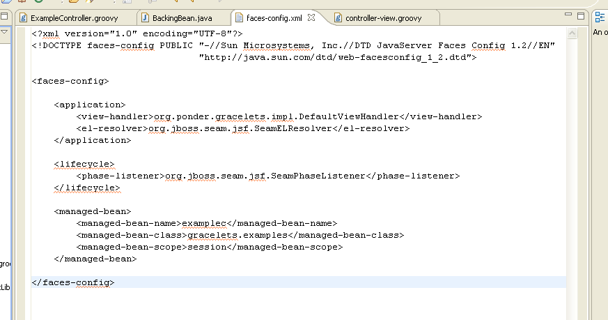 Above we define a JSF backing bean which is referenced in the faces-config.xml. An